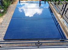 Укрываем внутреннюю зону участка геотекстилем и приносим три массивные прямоугольные плиты, которые в дальнейшем послужат наземным покрытием могилы.